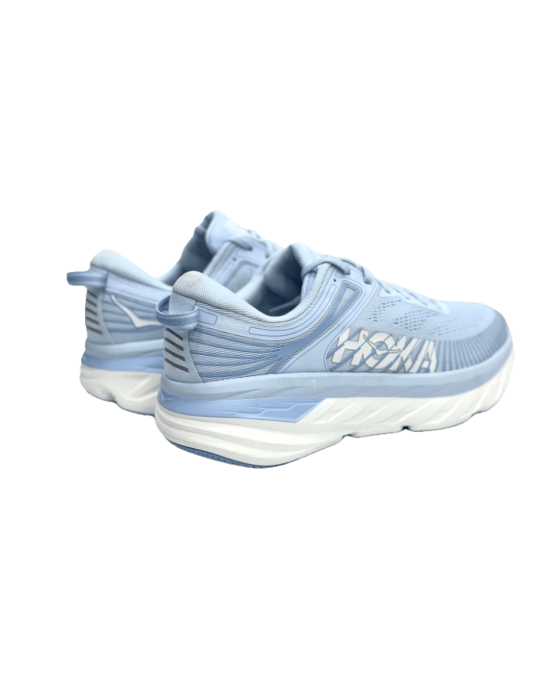 این کفش مدل Hoka One One Bondi 7است. این کفش برای استفاده روزمره و دویدن معمولی مناسب است. کفش دارای فناوری متا-راکر (meta-rocker) در قسمت میانی است که امکان چرخش سریع را فراهم میکند. سرعت نقطه قوت اصلی این مدل نیست و بیشتر برای دویدنهای با سرعت متوسط یا کندتر و تمرینات ریکاوری استفاده میشود. این مدل به عنوان یک کفش پیادهروی زنانه نیز شناخته میشود
