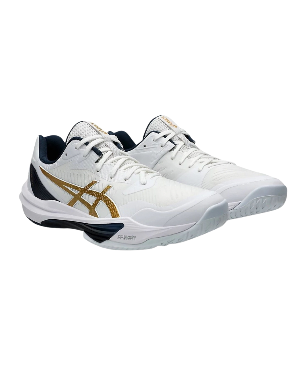 کفش مدل Asics Sky Elite FF 3 است که به طور خاص برای ورزش والیبال طراحی شده است. این کفش دارای ویژگیهای متعددی است که عملکرد بازیکنان مهاجم را بهبود میبخشد: • فناوریهای پیشرفته: این مدل از فناوریهای مختلفی بهره میبرد، از جمله:◦ FF BLAST™ PLUS: این بالشتکگذاری در لایه میانی کفش، جذب ضربه پیشرفته و بازگشت انرژی بیشتری را هنگام پرش فراهم میکند. ◦ TWISTRUSS™: این فناوری ارتجاعپذیری را افزایش داده و پایداری لازم را هنگام ترمز کردن و پرش فراهم میکند تا اتلاف انرژی به حداقل برسد. ◦ GEL Technology: استفاده از فناوری GEL در نواحی کلیدی کفش به جذب ضربات و کاهش فشار و خستگی پاها کمک میکند. ◦ Trusstic System: این سیستم پایداری بیشتری را در حین حرکات سریع فراهم میکند. • راحتی و تهویه:◦ رویه کفش ترکیبی از پلاستیک منعطف و توری است که تهویه مناسبی را فراهم کرده و از تعریق زیاد پا جلوگیری میکند. ◦ طراحی Dynamic Fit باعث میشود کفش به خوبی روی پا قرار گیرد و حرکات طبیعی پا را دنبال کند. • طراحی:◦ این کفش برای پرشهای قدرتمند طراحی شده است.