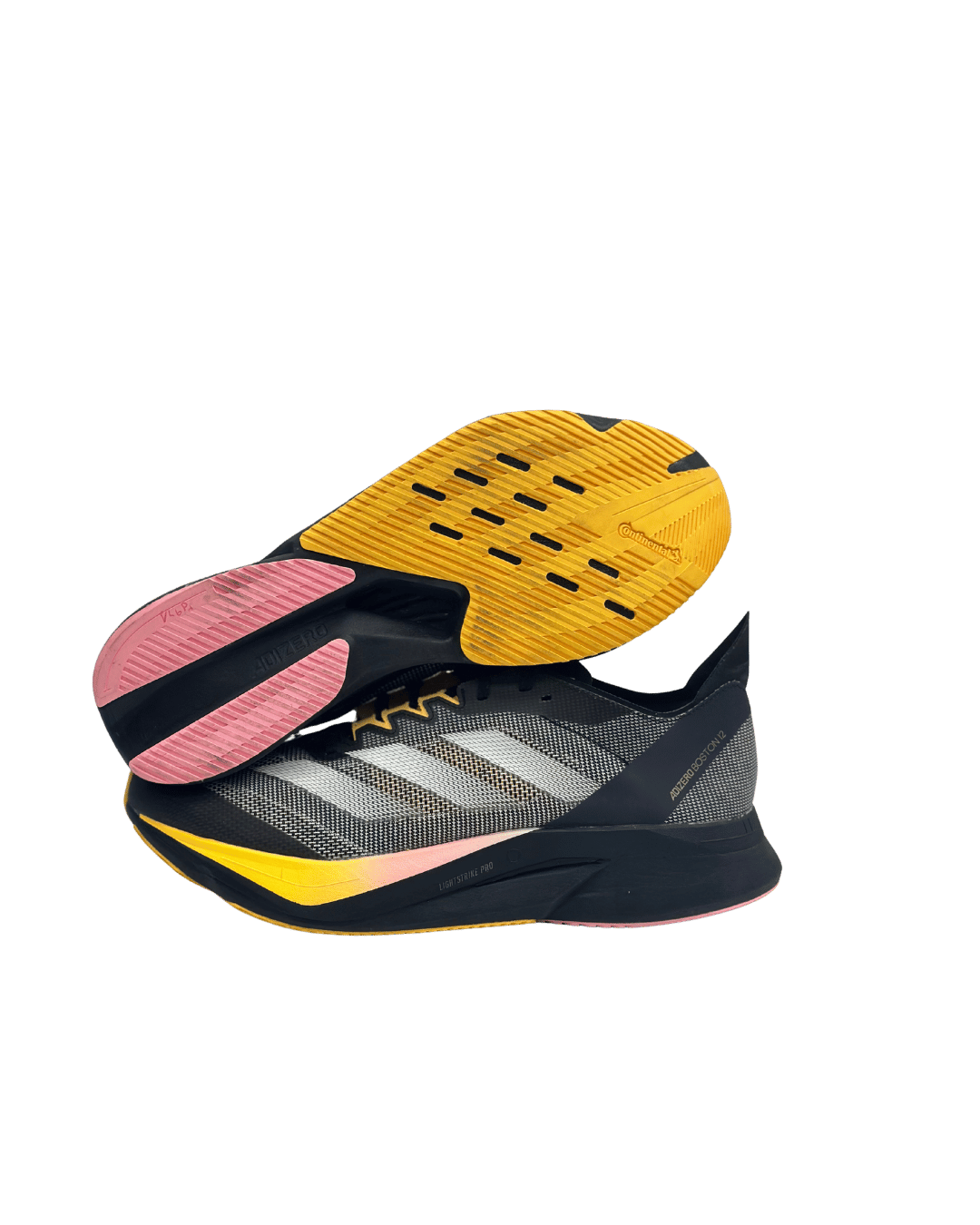 این کفش مدل Adidas Adizero Boston 12 است. این یک کفش دویدن حرفهای است که برای سرعت و عملکرد در مسافتهای طولانی طراحی شده است. ویژگیهای کلیدی این کفش: • ساختار سبکوزن: این کفش دارای ساختار سبکوزن است که به کاهش خستگی در حین دویدن کمک میکند و برای دوندگانی که به دنبال افزایش سرعت هستند، گزینهای عالی محسوب میشود. • زیره میانی پیشرفته: زیره میانی از دو ترکیب Lightstrike Pro در قسمت بالایی و Lightstrike 2.0 در قسمت پایینی تشکیل شده است که تعادل کاملی بین بالشتکگذاری و واکنشپذیری فراهم میکند. • فناوری EnergyRods 2.0: این فناوری شامل میلههای فایبرگلاس آناتومیک طراحی شده است که انتقال نرمتر، نیروی محرکه بیشتر و مدیریت بهتر مصرف انرژی را ممکن میسازد. • رویه مشبک و تنفسپذیر: رویه کفش از جنس مش سبک، مقاوم و تنفسپذیر است که پا را به خوبی در بر میگیرد و راحتی طولانیمدت و تهویه مناسب را تضمین میکند. • زیره خارجی با چسبندگی بالا: زیره خارجی دارای آج Continental است که در مناطق تحت سایش بیشتر قرار گرفته و چسبندگی کارآمدی را حتی در شرایط مرطوب فراهم میکند.