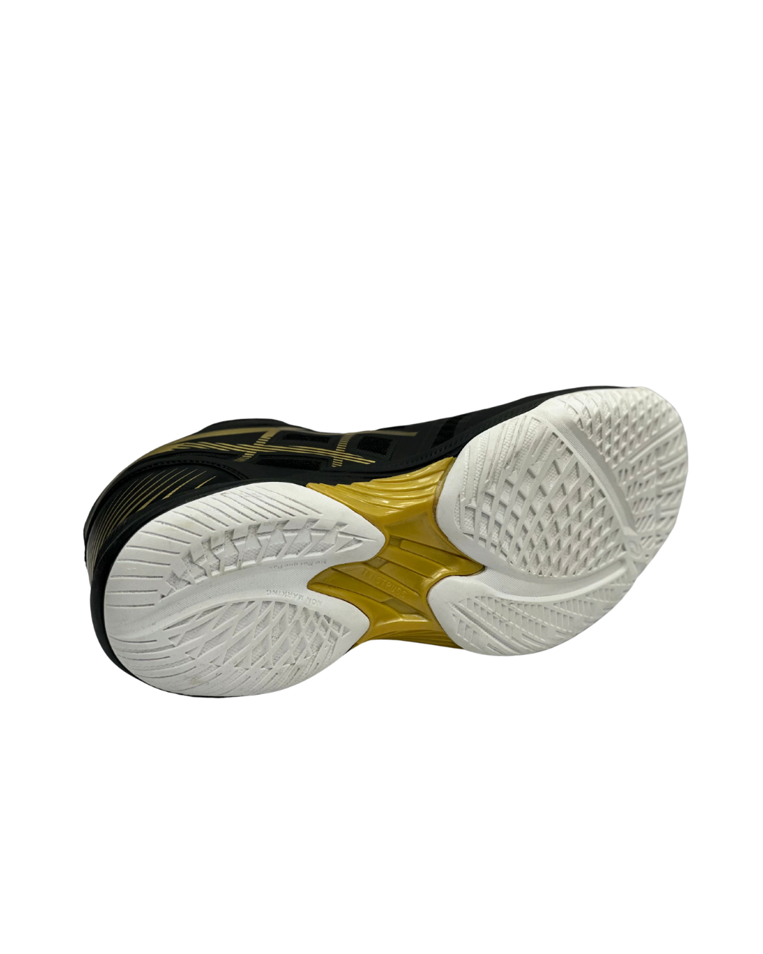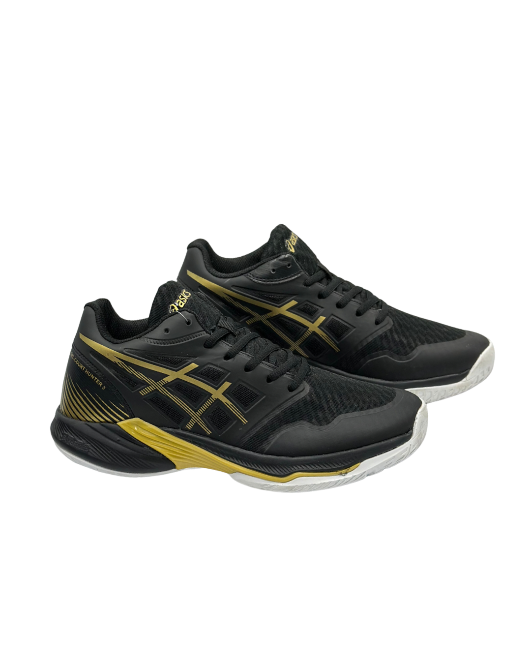 کفش نمایش داده شده در تصویر، مدل GEL-COURT HUNTER 3 از برند اسیکس (Asics) است. این کفشها به طور خاص برای ورزشهای داخل سالن مانند والیبال طراحی شدهاند. ویژگیهای اصلی این مدل عبارتند از: • نوع کفش: کفش ورزشی مردانه مناسب برای والیبال و سایر ورزشهای داخل سالن. • رنگ: ترکیب رنگ مشکی و طلایی. • ویژگیهای زیره: زیره کفش دارای ویژگیهایی مانند انعطافپذیری، قابلیت ارتجاعی، مقاومت در برابر سایش و خاصیت ضد لغزش است. • فناوریها: مجهز به بالشتک ژلهای (GEL) برای کاهش فشار وارده و جذب ضربه بهتر هنگام فرود و برخاست. • ساپورت: طراحی آن ساپورت قوس و مچ پا را فراهم میکند.