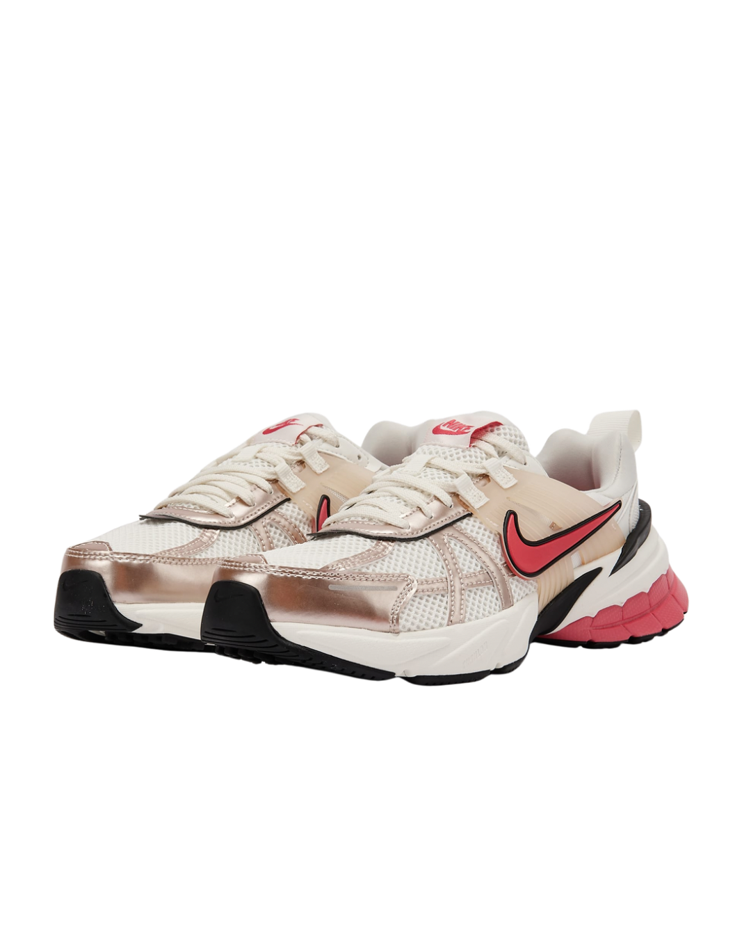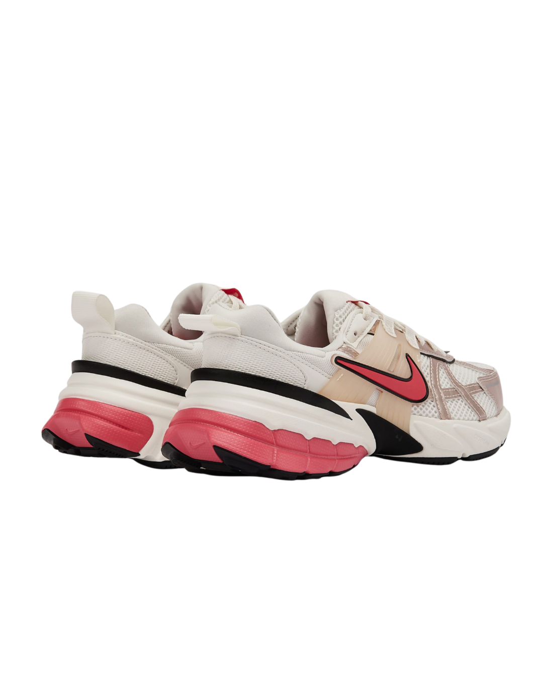 کفش موجود در تصویر مدل Nike V2K Run است. این کتانی اسپرت تلفیقی از سبک رترو دهه ۲۰۰۰ میلادی و فناوری مدرن راحتی است. ویژگی‌های کلیدی این مدل عبارتند از: • طراحی: دارای طراحی حجیم (چافی) و لایه‌ای با ظاهری اسپرت و مدرن است.   • رویه: رویه کفش از ترکیب مش تنفسی و الیاف مصنوعی (و چرم در برخی مدل‌ها) ساخته شده که حس سبکی و جریان هوا را فراهم می‌کند.   • زیره میانی: از فوم نرم با فناوری‌های بالشتک‌گذاری مانند Nike Kushion یا Zoom (در برخی نسخه‌ها) استفاده می‌کند که راحتی بسیار خوبی برای استفاده روزمره و پیاده‌روی فراهم می‌نماید.   • زیره خارجی: زیره لاستیکی چسبندگی مناسبی دارد.   • کاربری: عمدتاً برای استفاده روزمره، پیاده‌روی شهری و تمرینات سبک باشگاهی مناسب است.   • جزئیات: دارای جزئیاتی مانند قفس TPU در قسمت میانی پا برای ثبات بیشتر، و لهجه‌های متالیک برای استایل خاص Y2K است.