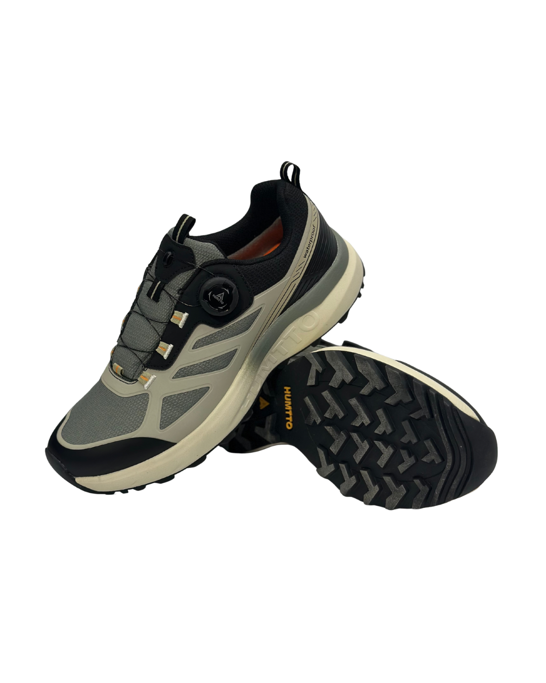 کفش نمایش داده شده در تصویر یک مدل کفش پیاده‌روی/هایکینگ از برند هامتو (Humtto) است که برای فعالیت‌های روزمره و طبیعت‌گردی سبک طراحی شده است. ویژگی‌های اصلی این مدل کفش عبارتند از:رویه: رویه کفش ترکیبی از پارچه تنفسی و متریال مقاوم TPU است که ضمن افزایش دوام، گردش هوای مناسبی را فراهم می‌کند.همچنین در تصویر مشخص است که این مدل دارای ویژگی ضد آباست.  زیره: زیره کفش از ترکیب EVA سبک و انعطاف‌پذیر به همراه لاستیک هامتو ساخته شده است. این ترکیب باعث جذب ضربه (آنتی شوک) و چسبندگی مناسب در سطوح مختلف می‌شود.  سیستم بستن: این کفش به جای بندهای سنتی، دارای سیستم بند دیسکی است که تنظیم سریع و راحت اندازه کفش را فراهم می‌کند.  راحتی: کفی طبی با خاصیت ارتجاعی بالا، نرمی و راحتی مناسبی را برای پیاده‌روی‌های طولانی فراهم می‌کند و فشار وارده به پا را کاهش می‌دهد.  وزن: این مدل‌ها معمولاً سبک هستند که برای استفاده طولانی مدت مناسب است.